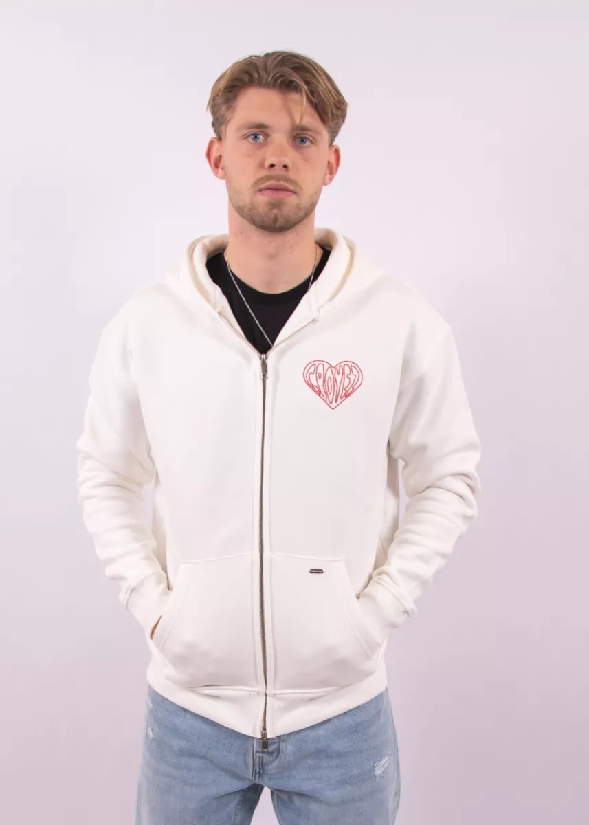 Croyez Stitched Heart Zip HoodieCreme
